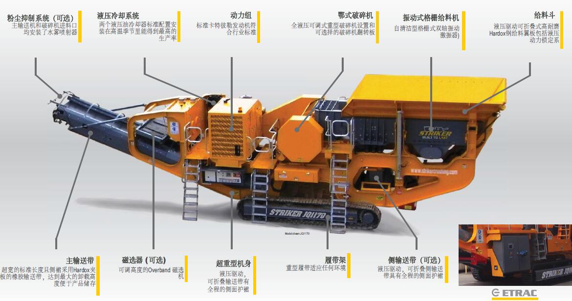 斯泰克移动式卧式反击破是专门为拆除/回收/采石及采矿应用的初级、二级、三级的建筑材料破碎而设计,其特点就是提供加强型厚度的重型板锤来提供使用寿命和可利用率。